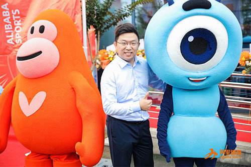 阿里体育橙狮悦动开业典礼现场室外卡通形象造型